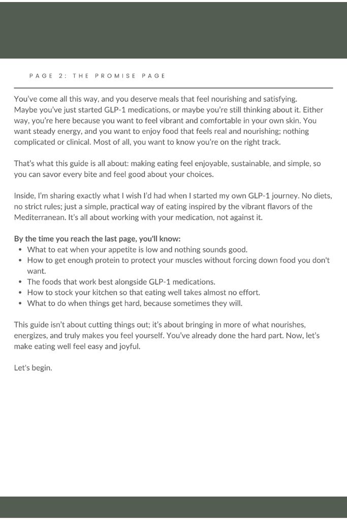 The Mediterranean Refresh: a simple, nourishing guide to eating well on GLP-1 medications, from someone who has been exactly where you are.