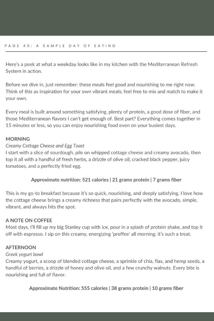 The Mediterranean Refresh system gives you everything you need to eat with intention, protect your health, and feel genuinely good in your body again.